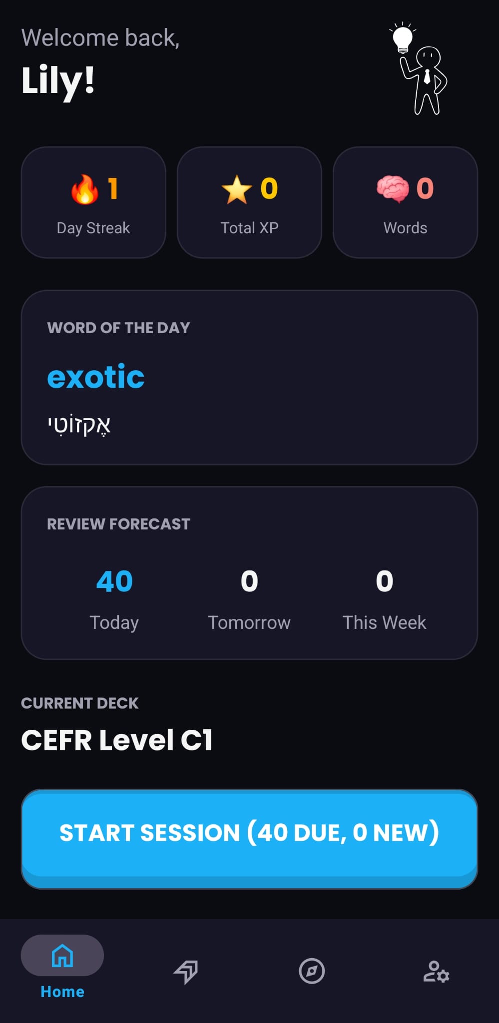 Optimized spaced repetition logic engineered for vocabulary acquisition.